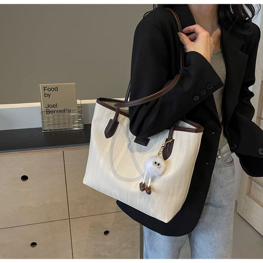 Set: Jacquard Faux Leather Tote Bag + Bag Charm
