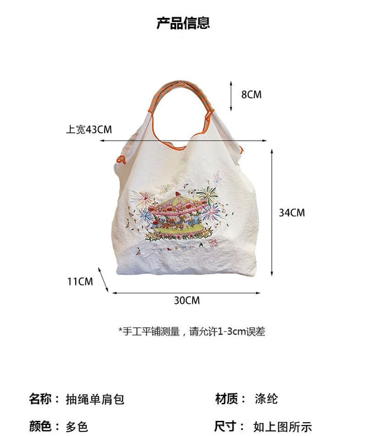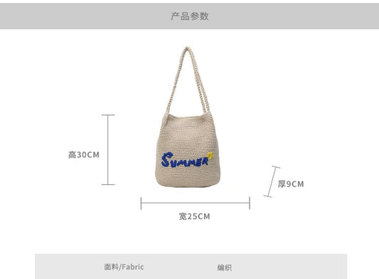 Lettering Embroidered Nylon Tote Bag / Bag Charm / Set