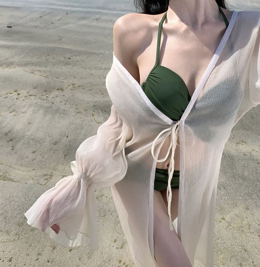 Short-Sleeve Sheer Panel Maxi Sheath Lolita Dress / Light Jacket / Set