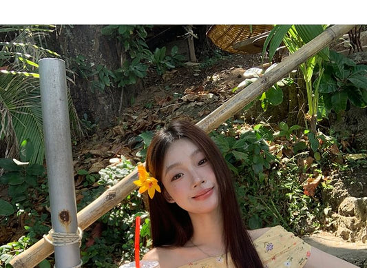 Sleeveless Plain A-Line Cocktail Dress / Ruffle Trim Camisole Top / Wide Leg Pants / Set