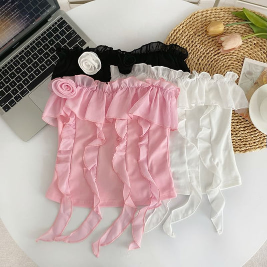 Floral Flower Accent Asymmetrical Crop Tube Top
