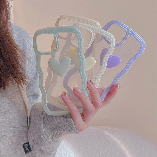 Korean Aesthetic Love Heart Wave Phone Case For iPhone 13 12 11 Pro XS Max X XR Simple Cute Clear Soft Silicone ME18