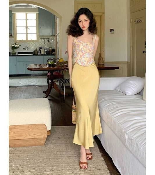 Set: Crewneck Plain Sweater + High Waist Midi Skirt