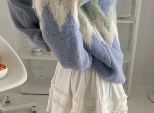 Plain Cardigan / V-Neck Camisole Top / High Waist Ruffle Maxi A-Line Skirt