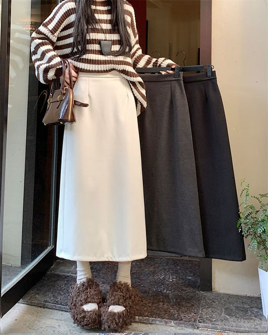 Collared Double Breasted Jacket / High Waist Maxi A-Line Skirt