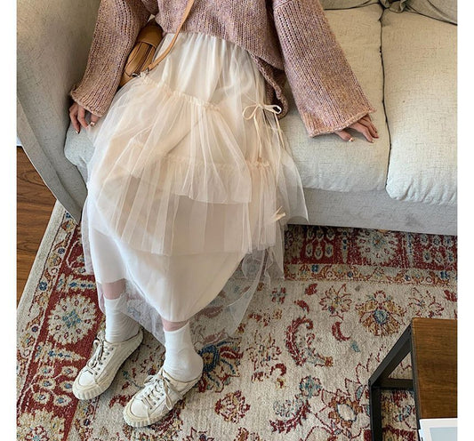 High Rise Plain Lace Trim Layered Mini A-Line Skirt
