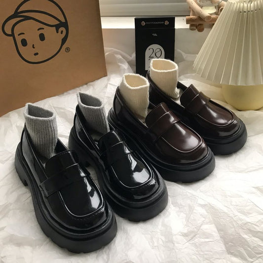Platform Flower Buckle Patent Leather Mary Jane Shoes