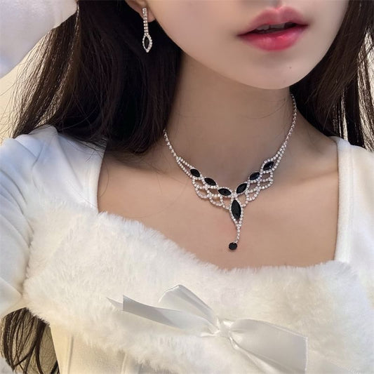 Necklace Set and Tiara Gold-Plated Diamond Crown – Sparkling