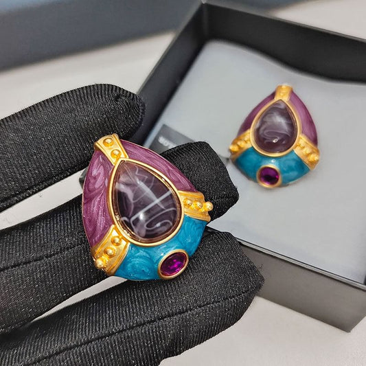 Rhinestone Spider Faux Pearl Necklace / Asymmetrical Earring / Ring