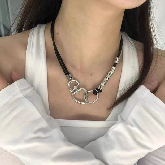 Heart Alloy Faux Leather Choker
