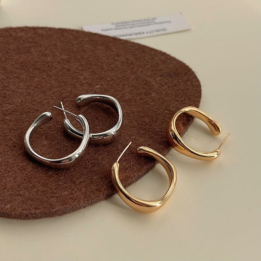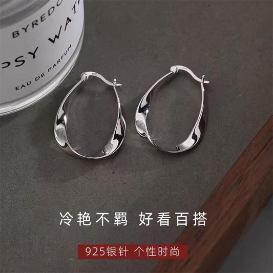 925 Sterling Silver Asymmetrical Huggie Drop Earring