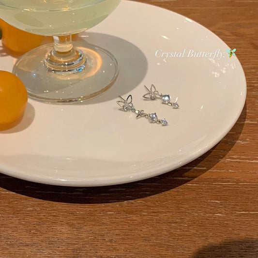 Butterfly Rhinestone Gemstone Asymmetrical Drop Earring