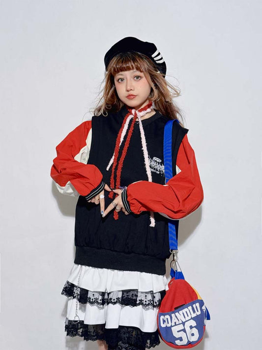 Y2K Dark Red Spider Distress Trim Loose Sweater Lace-up Sleeves