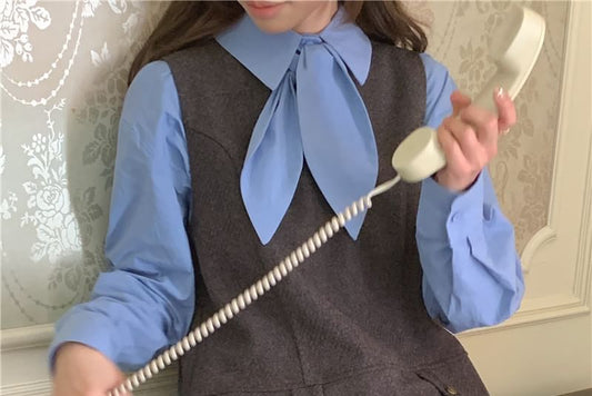 Long-Sleeve Button-Up Plain Babydoll Blouse