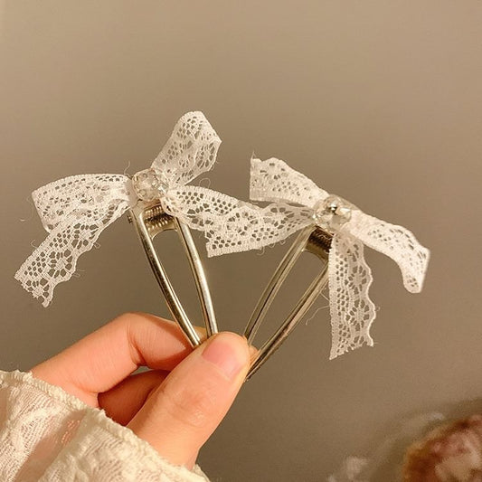Set of 2: Ribbon Heart Rhinestone Hair Clip