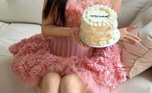 Set: Strapless Flower Detail Mini A-Line Party Dress + Plain Shorts