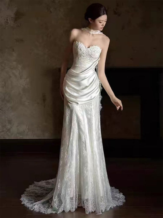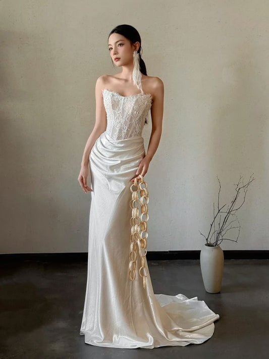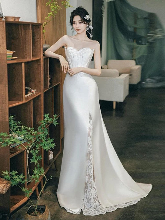 Strapless Lace Panel Fishbone Mermaid Wedding Gown