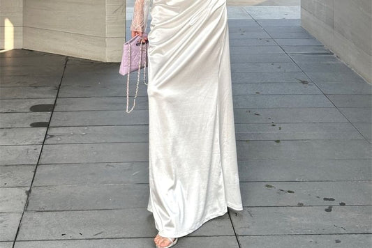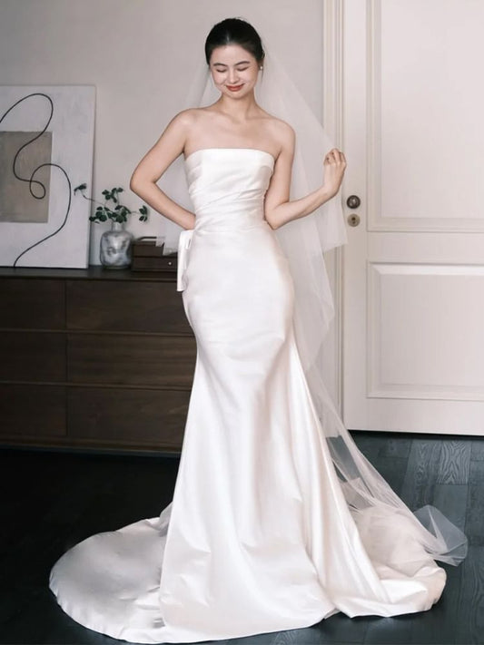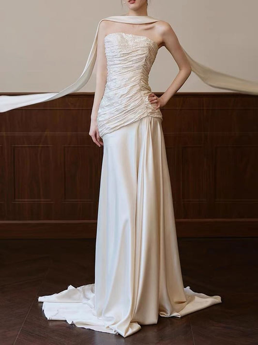 Strapless Shirred Mermaid Satin Wedding Gown