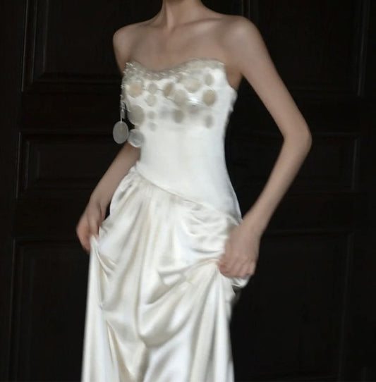 Strapless Sequin Dangle Satin Mermaid Satin Wedding Gown