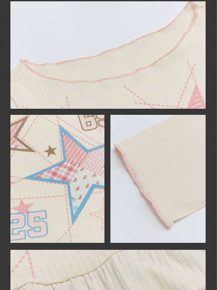 Apricot Stars Long Sleeves Top Double Layered Ruffle Hem