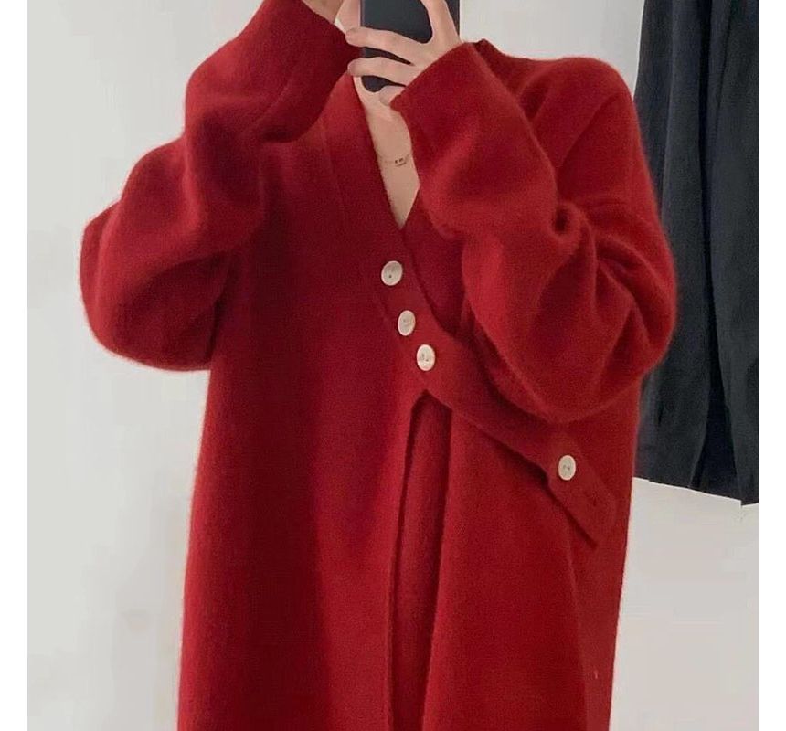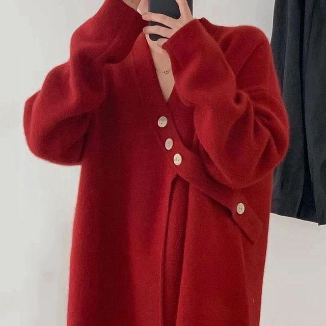 Asymmetrical V-Neck Plain Button-Up Cardigan
