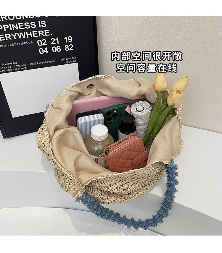Bow Tassel Strap Woven Tote Bag