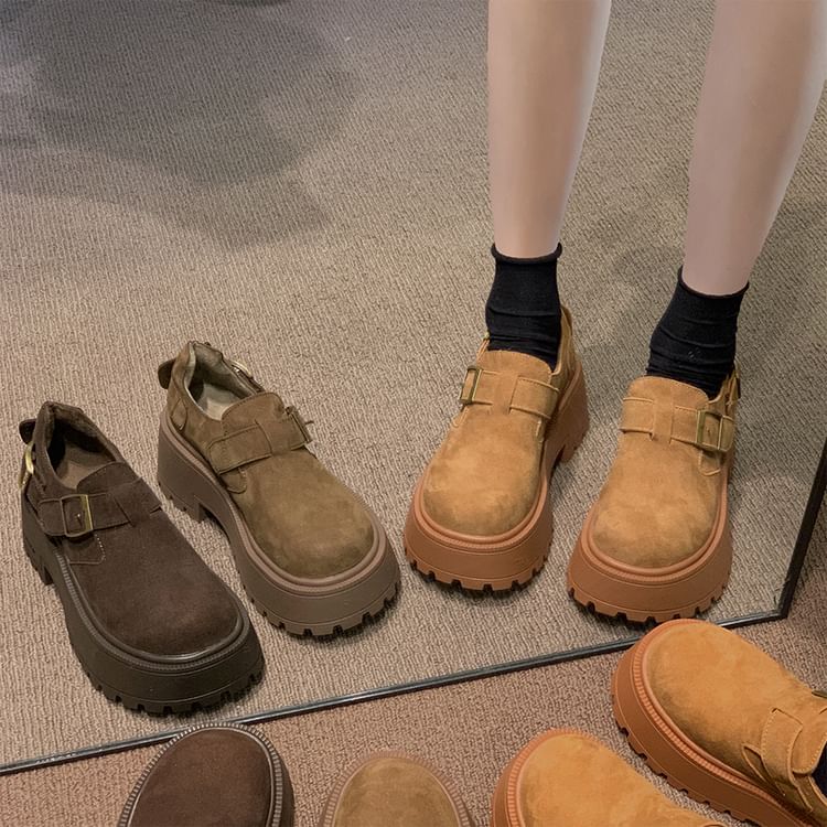 Buckled Platform Chunky Heel Loafers