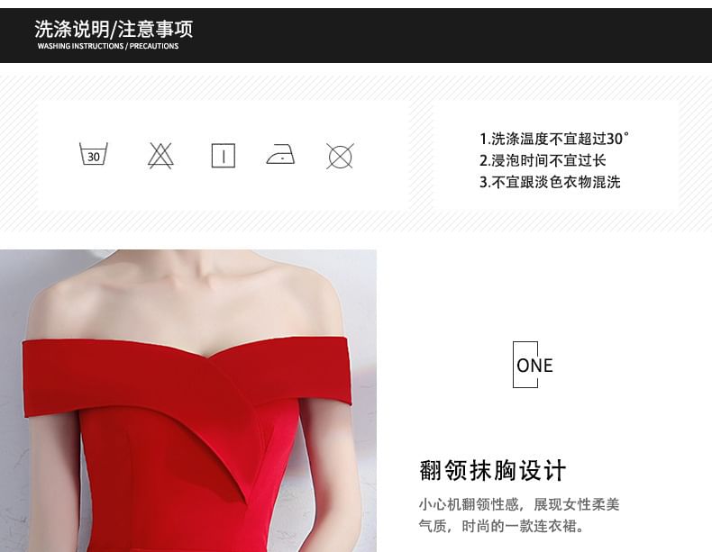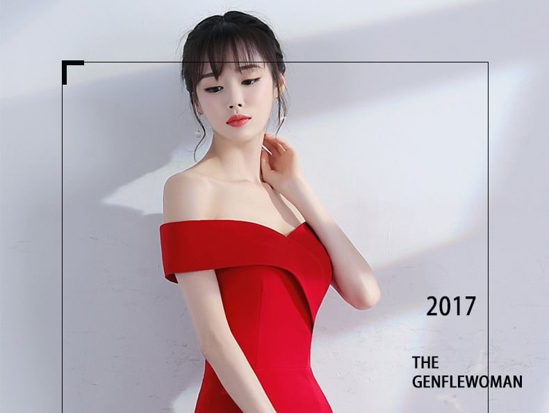 Off-Shoulder Plain Slit Mermaid Evening Gown