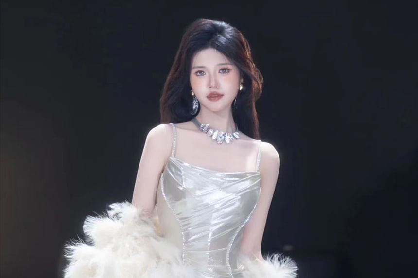 | Color: | Set Of 2 - Strap Evening Gown & Fluffy Shawl - Silver & Off-White |