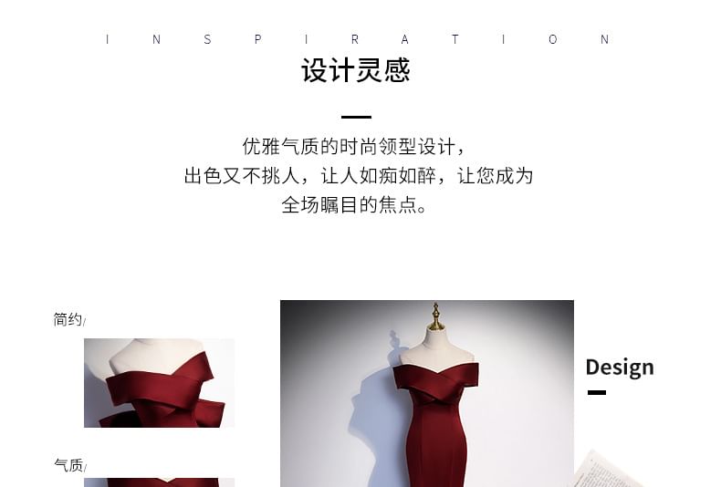 Off-Shoulder Plain Bow Mesh Panel Mermaid Evening Gown