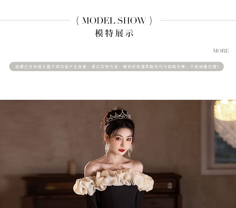 Gown Shoulder Two Ruffle Tone Long-Sleeve Evening Trim Off Mermaid