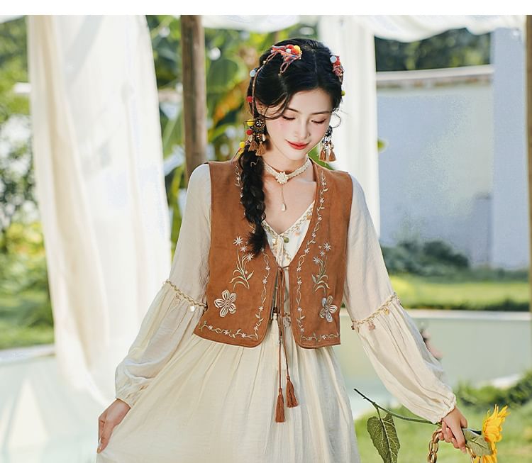 Print Skirt Embroidery Set Tassel Shirt Flower