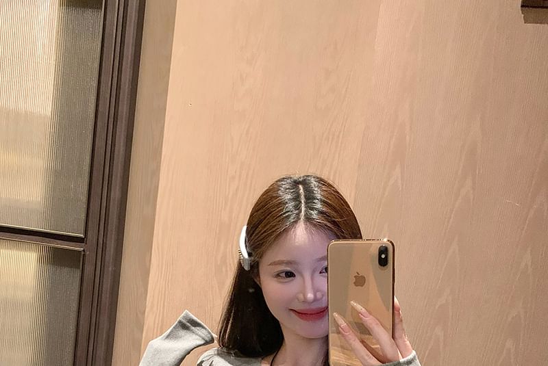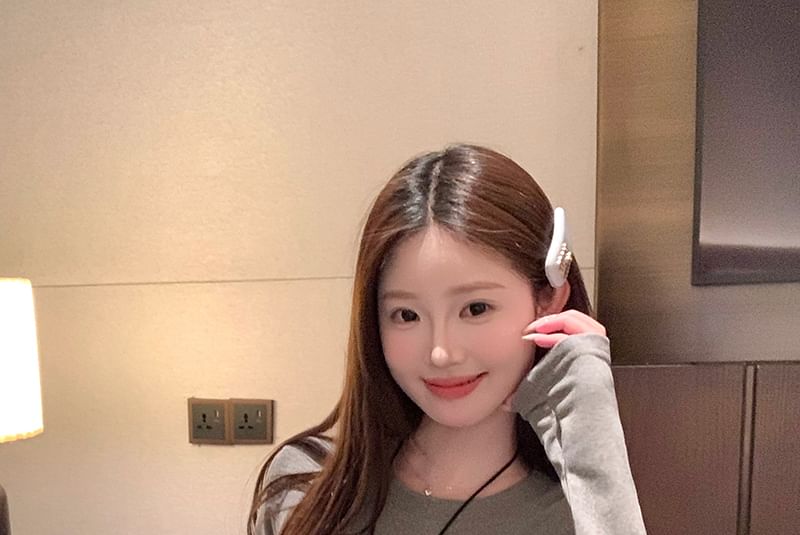 Long-Sleeve Crewneck Ruffle Plain Top