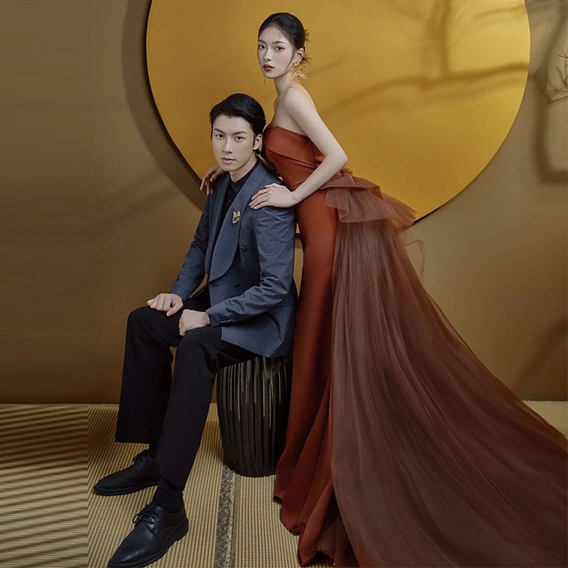 Mermaid Trained Evening Gown Strapless Bow Back Plain