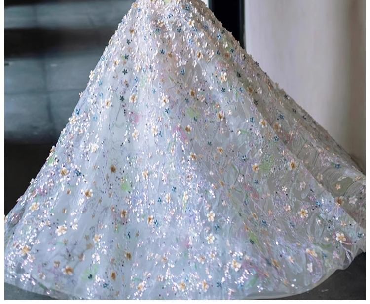 Mesh Evening A-Line Gown Strapless Floral