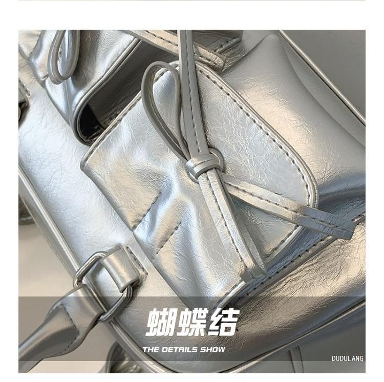 Faux Leather Ribbon Bowler Bag