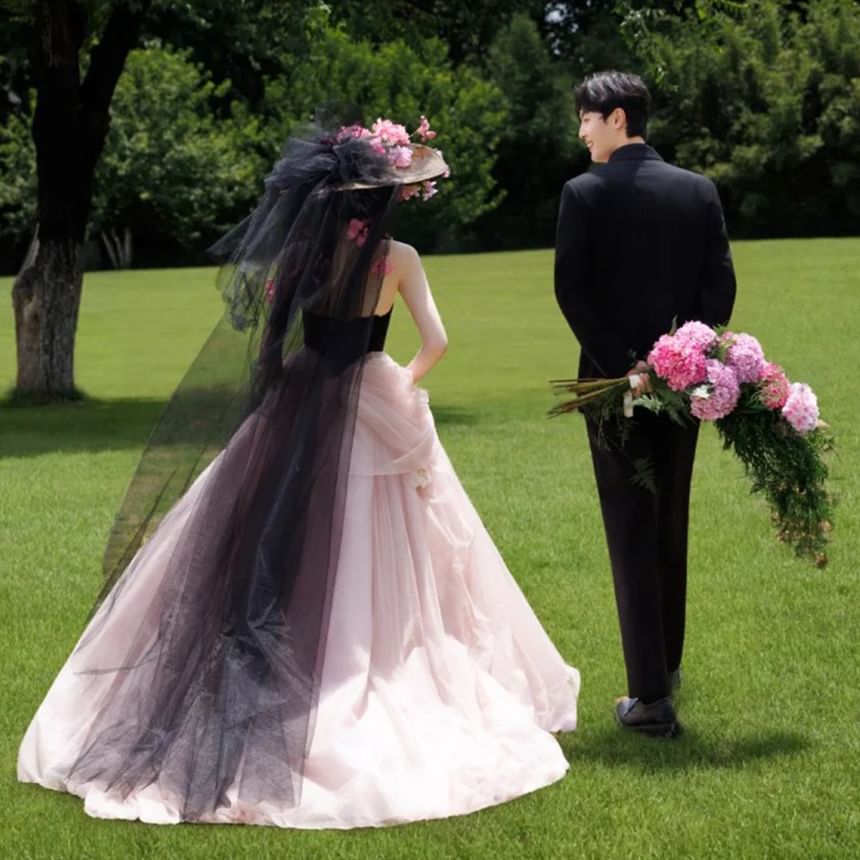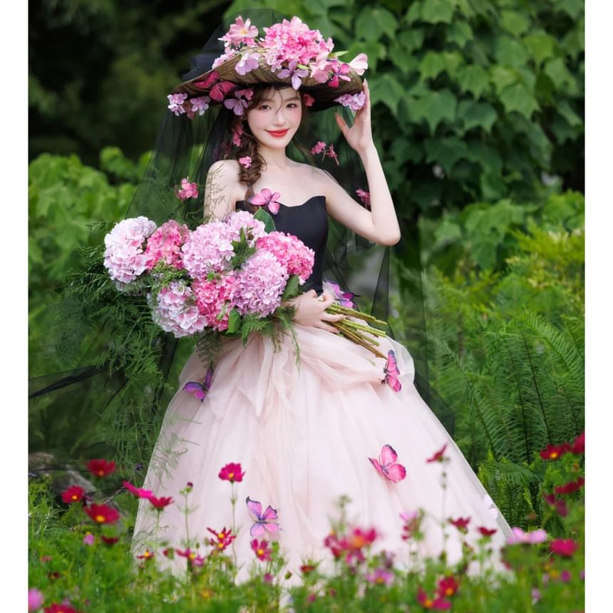 Strapless Two Tone Butterfly Accent Ball Gown