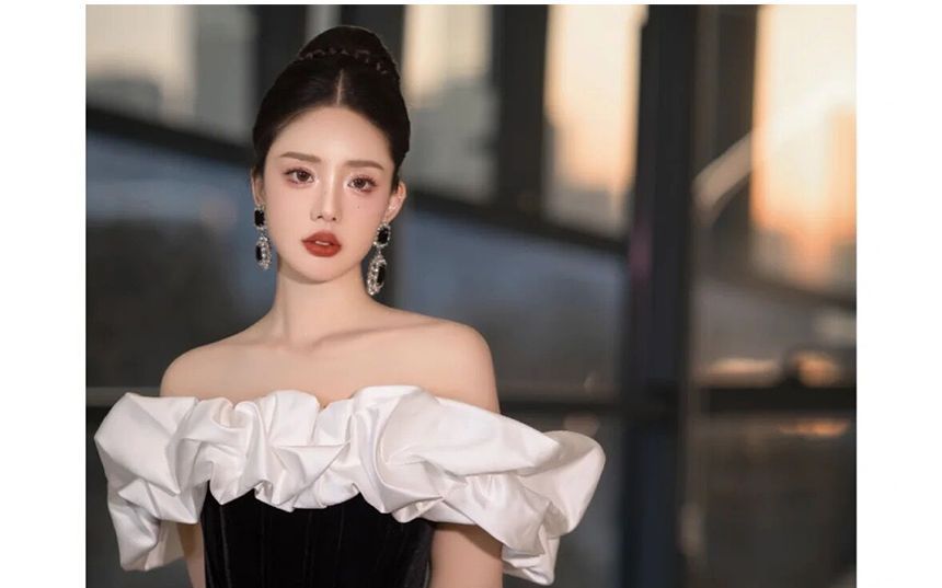 Off-Shoulder two-Tone Evening Gown Ruffled Velvet Mermaid