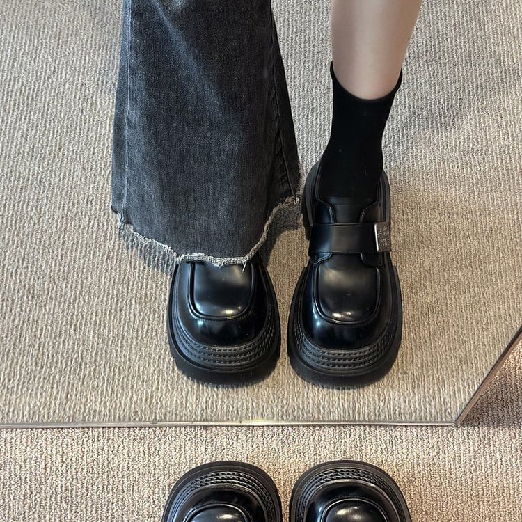 Platform Adhesive Strap Metal Accent Faux Leather Shoes
