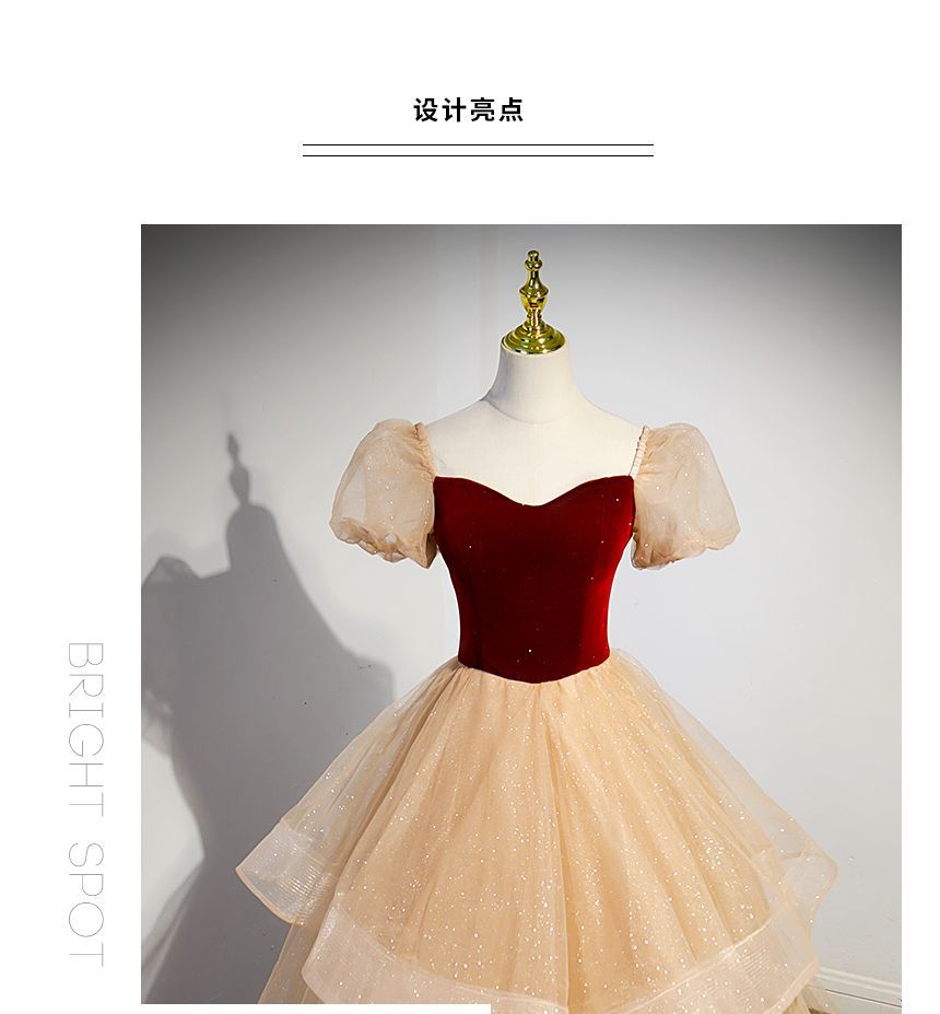 Puff-Sleeve Sweetheart-Neckline Asymmetrical A-Line Mesh Evening Gown