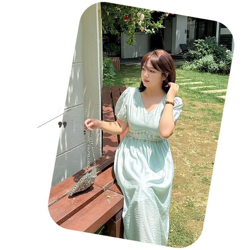 Short Sleeve V-Neck Sequin Midi A-Line Dress