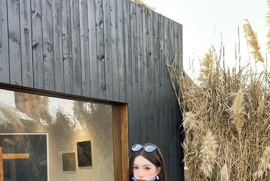 Stand Collar Plain Contrast Trim Fluffy Zip Jacket