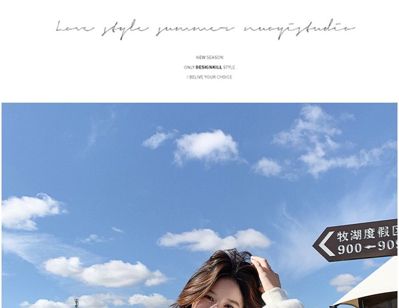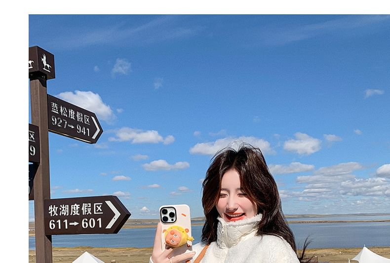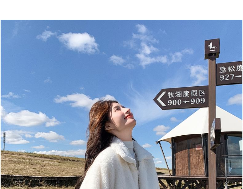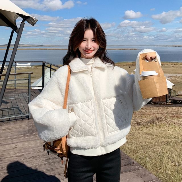 Stand Collar Plain Quilted Panel Zip Teddy Jacket