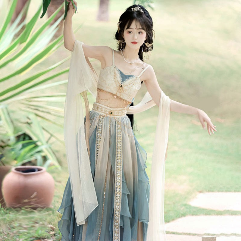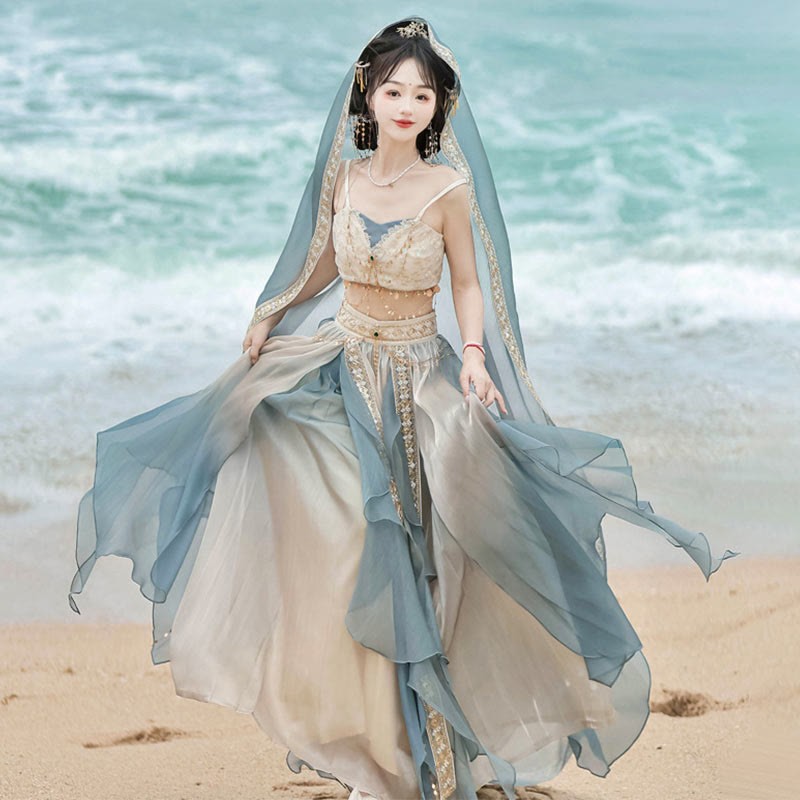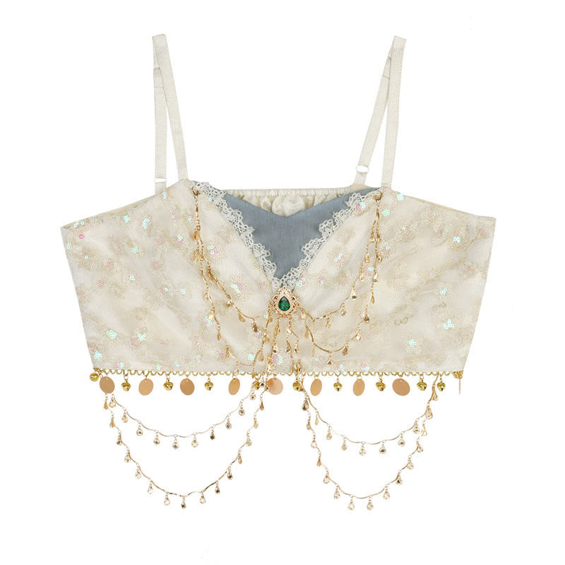 Vintage Pieces Top Lace Veil Sequin Four Skirt Embroidery Shawl