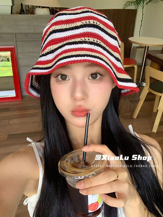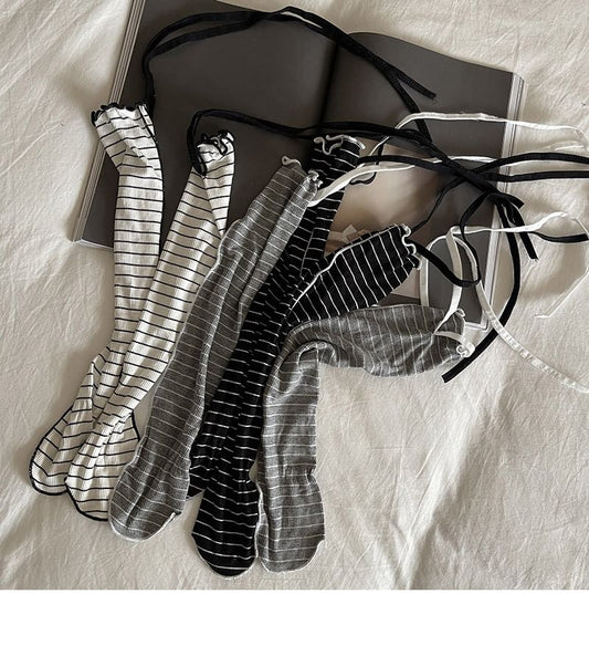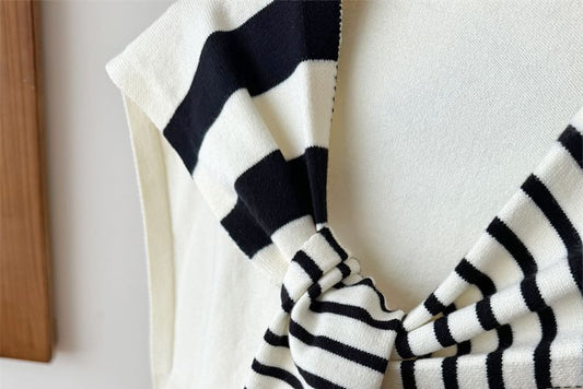 Striped Faux Pearl Button Knit Crop Camisole Top