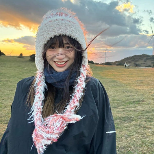 Striped Devil Horn Accent Crop Zip Hoodie / Drawstring Waist Bootcut Sweatpants