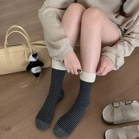 Striped Socks / Plain Socks / Contrast Trim Socks