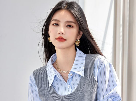 Striped Shorts Collar Shirts Sleeve And Pan Loose Pieces Peter Khaki Short Set Two
