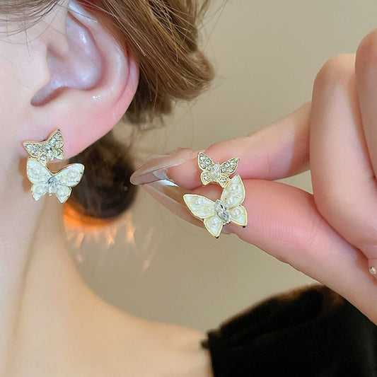 Butterfly Rhinestone Faux Pearl Ear Stud