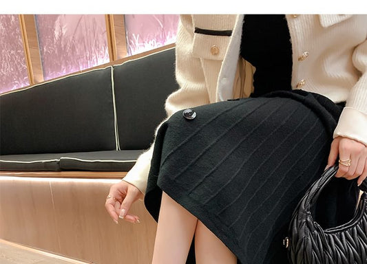 Hidden Wedge Plain Buttoned Mid-Calf Boots
